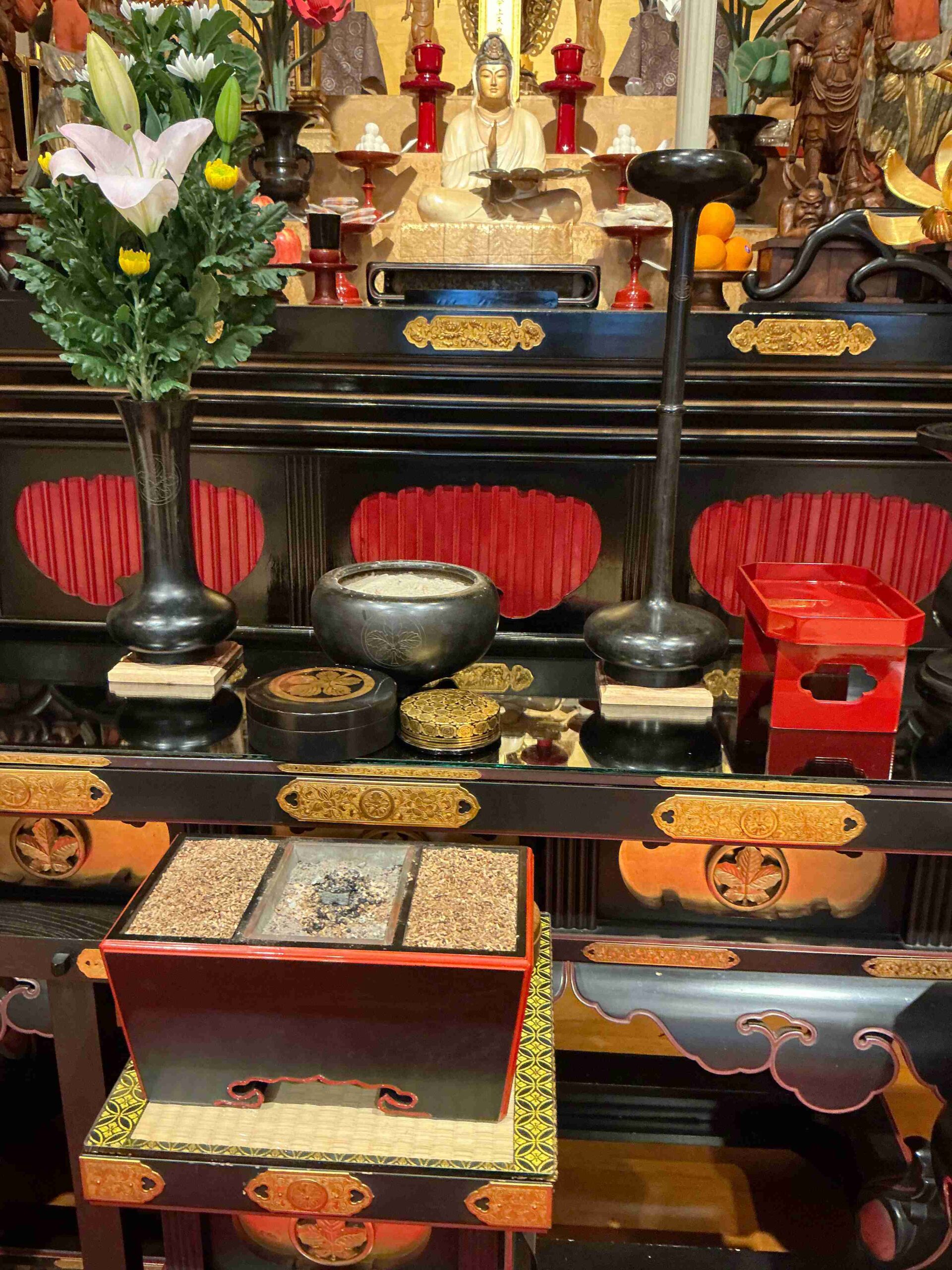 Experience the traditional Japanese ritual of offering incense while listening to the monks chanting sutras .